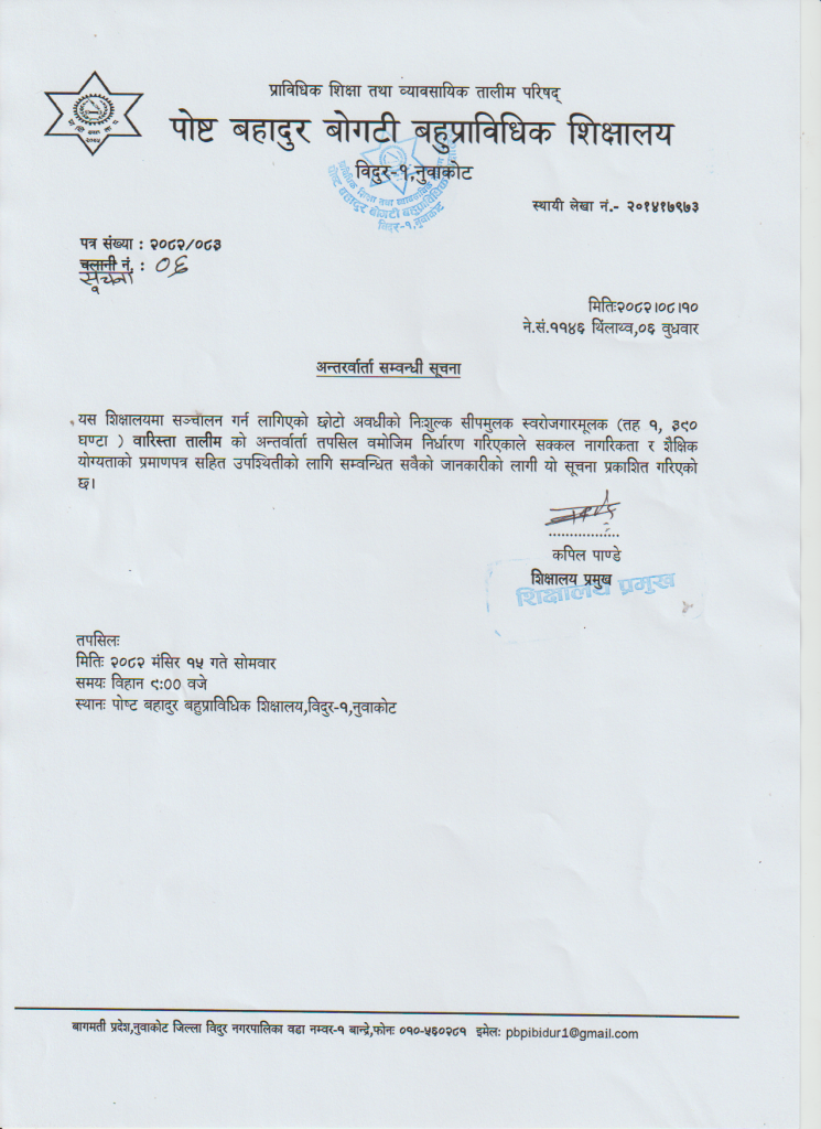 27 11, 2025 वारिस्ता तालिम अन्तरवार्ता सम्बन्धी सूचना ।।। By admin|2025-11-27T10:23:07+05:452025-11-27|Notice|0 Comments Read More